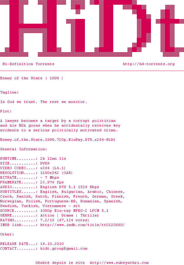 Telechargez le RSS « Fichier de la release Enemy.of.the.State.1998.720p.BluRay.DTS.x264-HiDt »