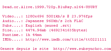 Voir le nfo de la release Dead.Or.Alive.1999.720p.BluRay.x264-USURY