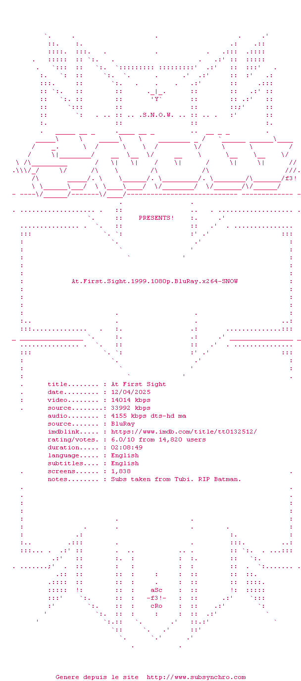 Voir le nfo de la release At.First.Sight.1999.1080p.BluRay.x264-SNOW