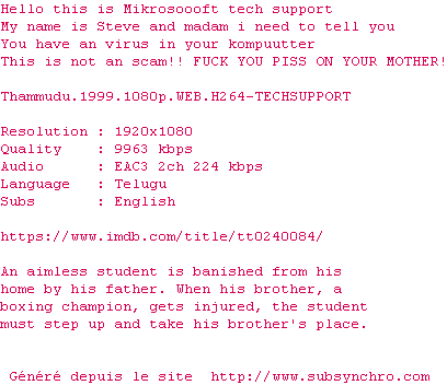 Voir le nfo de la release Thammudu.1999.1080p.WEB.H264-TECHSUPPORT