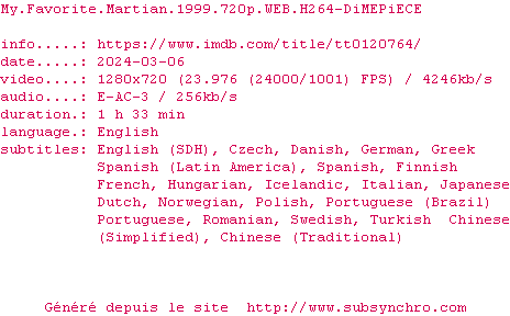 Voir le nfo de la release My.Favorite.Martian.1999.720p.WEB.H264-DiMEPiECE