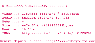 Voir le nfo de la release K-911.1999.720p.BluRay.x264-USURY