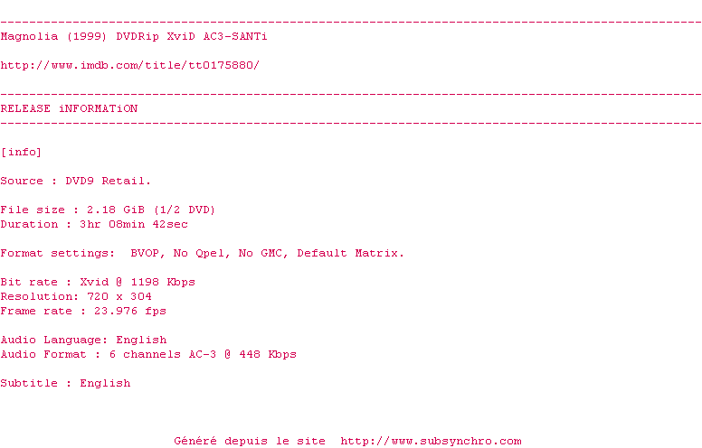 Earl Partridge, age et malade, va bientot mourir. Il demande a son fidele infirmier de retrouver le fils qu'il a jadis abandonne. Sa jeune epouse, qui convoitait sa fortune, devrait se rejouir mais n'y parvient pas. Frank Mackey, jeune gourou cathodique de la seduction masculine, s'est construit un passe et une vie. Mais combien de temps le masque peut-il resister? Toutes ces vies s'entrecroisent le temps d'une journee comme les autres sous le soleil de la Californie.