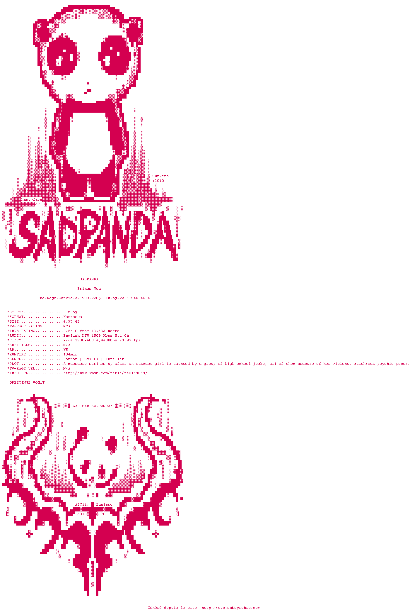 Parce qu'elle est differente, secrere et renfermee, Rachel Lang subit les moqueries de ses camarades de lycee. Privee de l'affection de sa mere, internee depuis de longues annees pour schizophrenie, Rachel n'a pas trouve de reconfort aupres de sa famille adoptive. En outre, la jeune fille est troublee par d'etranges facultes de telekinesie dont elle ignore l'origine. Quand Lisa, sa meilleure amie, se suicide, abusee par un joueur de l'equipe de football, l'univers fragile de Rachel bascule. Piegee et humiliee, Rachel laisse alors exploser le pouvoir devastateur de sa colere
