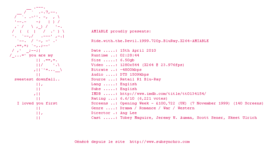 Telechargez le RSS « Fichier de la release Ride.with.the.Devil.1999.720p.BluRay.X264-AMIABLE »