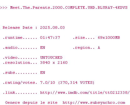 La release Meet.The.Parents.2000.COMPLETE.UHD.BLURAY-4KDVS est en 4K