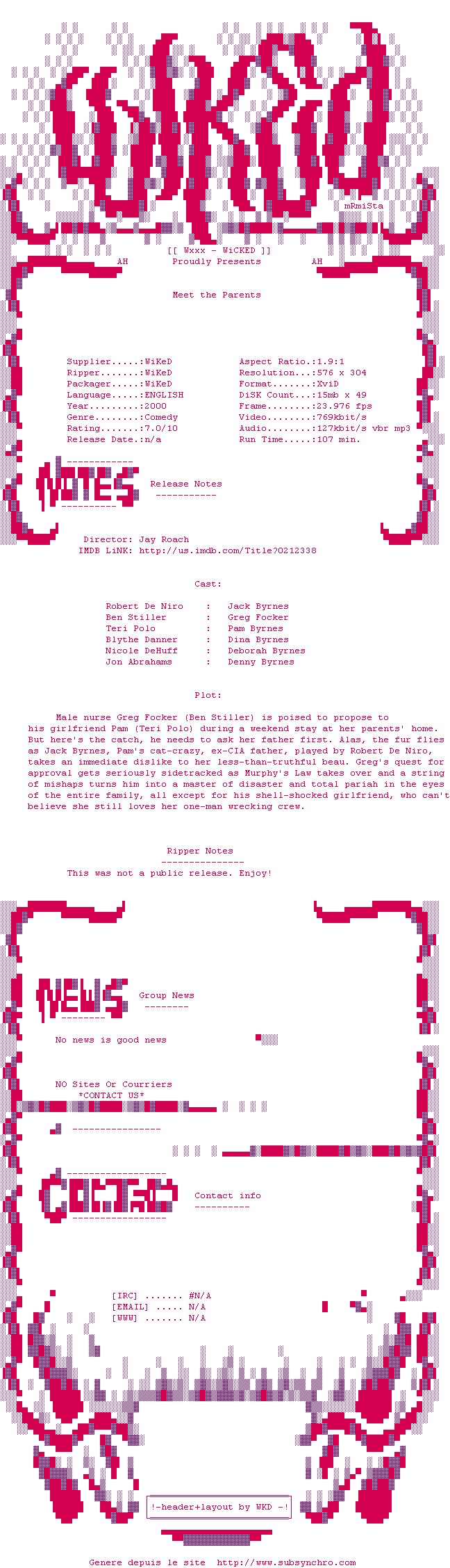 Y avez-vous pense ? Nous proposons déjà 1954 sous-titres pour le film Mon beau-père, mes parents et moi. Avez-vous essaye de voir si ces sous-titres etaient compatibles avec cette release ? On vous laisse le soin de tester cela pour nous et de contribuer au site en postant le sous-titre en cas de compatiblite constatee !