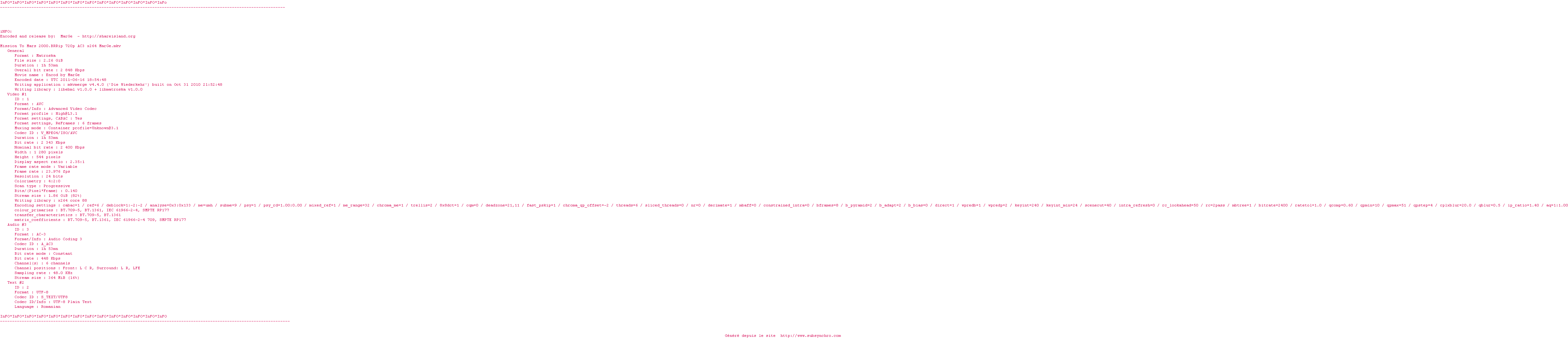 Voir le nfo de la release Mission.To.Mars.2000.BRRip.720p.AC3.x264-MarGe