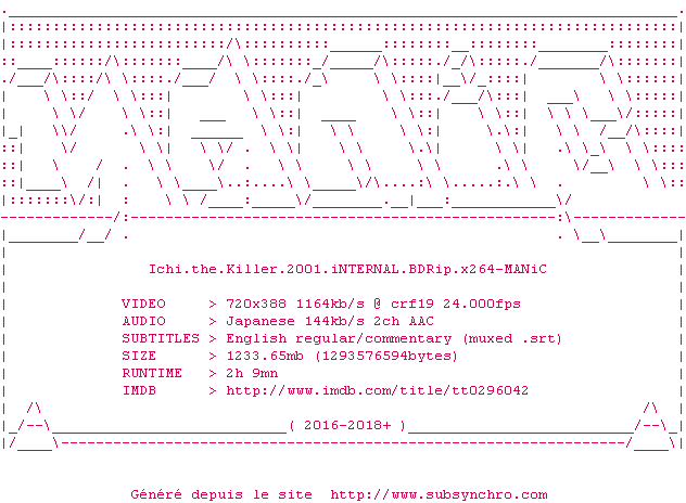 Voir le nfo de la release Ichi.The.Killer.2001.iNTERNAL.BDRip.x264-MANiC