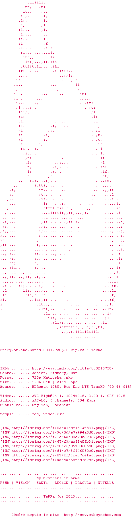 Voir le nfo de la release Enemy.at.the.Gates.2001.720p.BDRip.x264-TeRRa