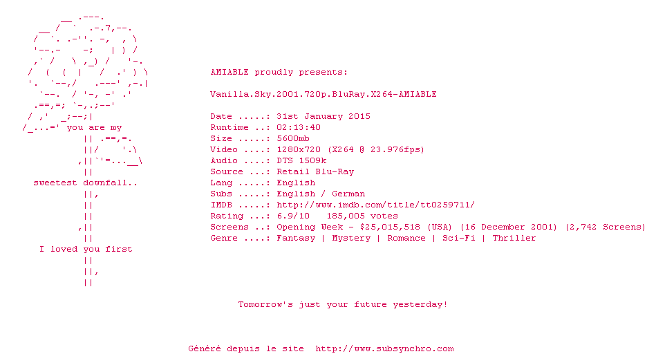 Le commentaire de Un membre qui nexiste plus Commente par un visiteur, Le Mercredi 04 Fevrier 2015 à 17h16 Quelle bouse si on la compare à l'excellent Ouvre les yeux 2 / 10 Le commentaire de elliotvedav Commente par elliotvedav (35), Le Jeudi 05 Fevrier 2015 à 22h25 t'as rien compris à la tournure de cette adaptation.. Incomparable avec son prédécesseur 0 0 0 1