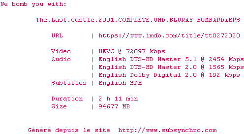 Voir le nfo de la release The.Last.Castle.2001.2160p.UHD.BluRay.x265-B0MBARDiERS