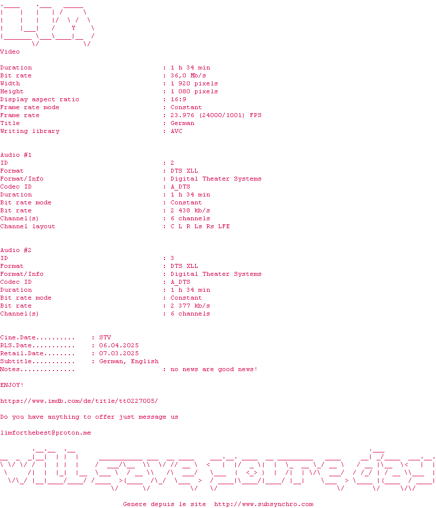 Voir le nfo de la release Made.2001.MULTi.COMPLETE.BLURAY-LIM