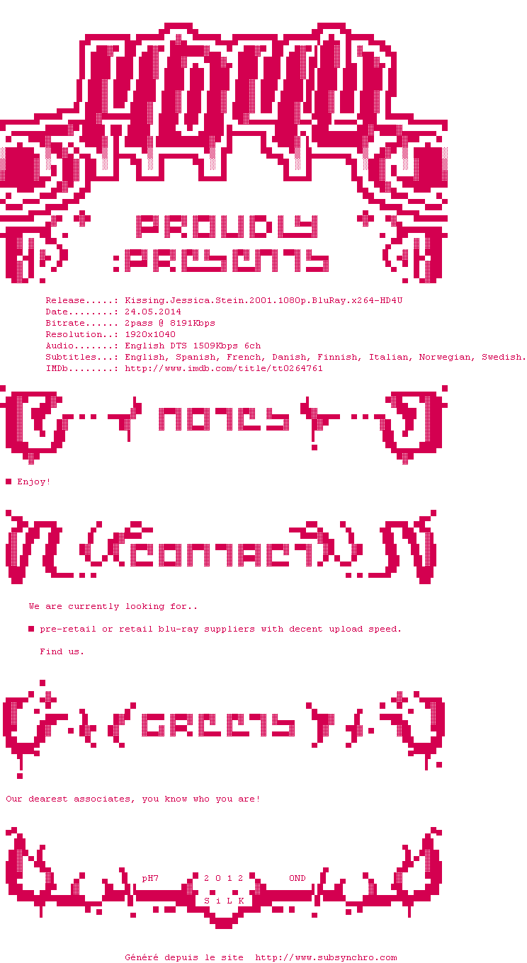 Voir le nfo de la release Kissing.Jessica.Stein.2001.1080p.BluRay.x264-HD4U