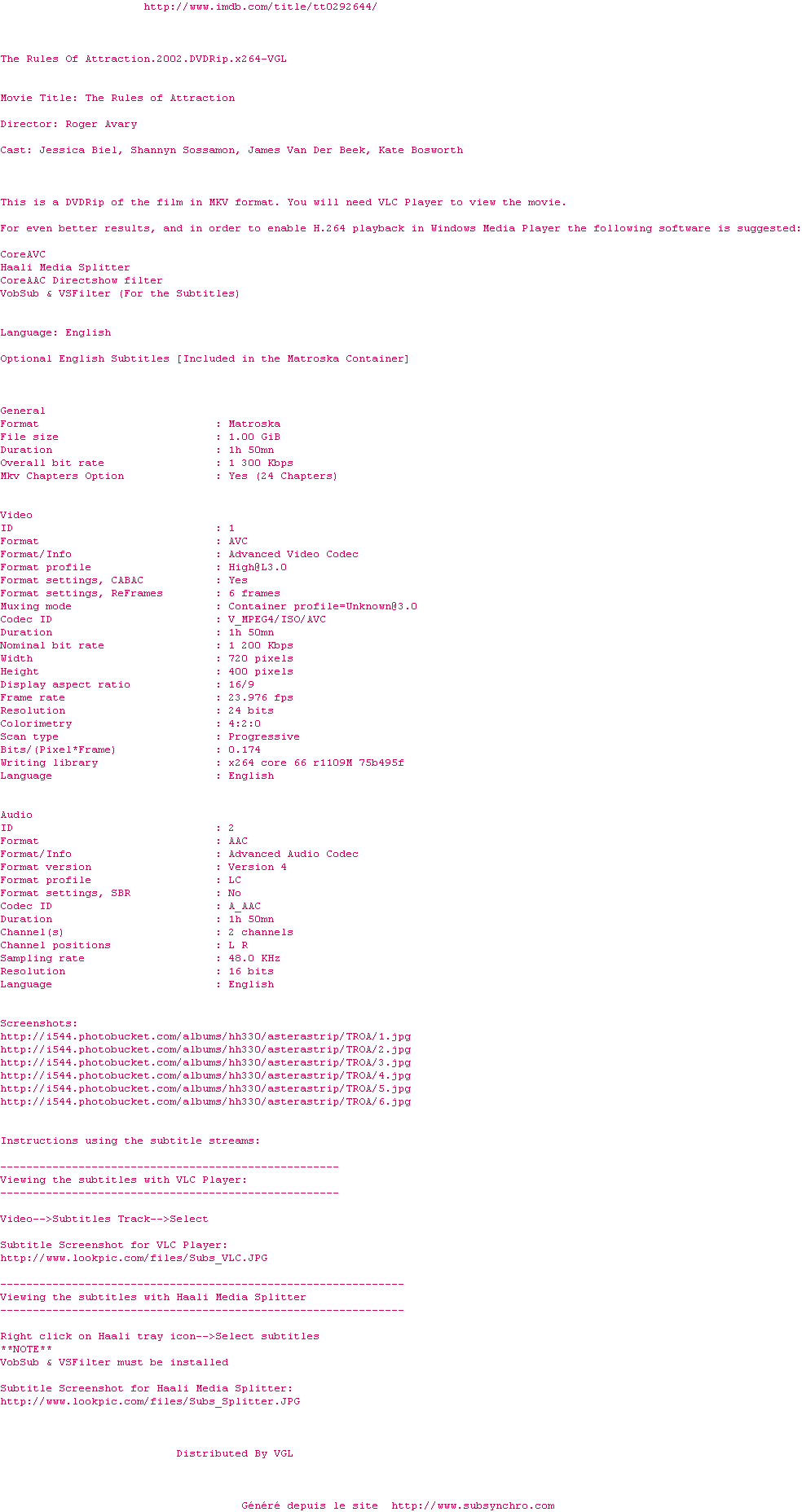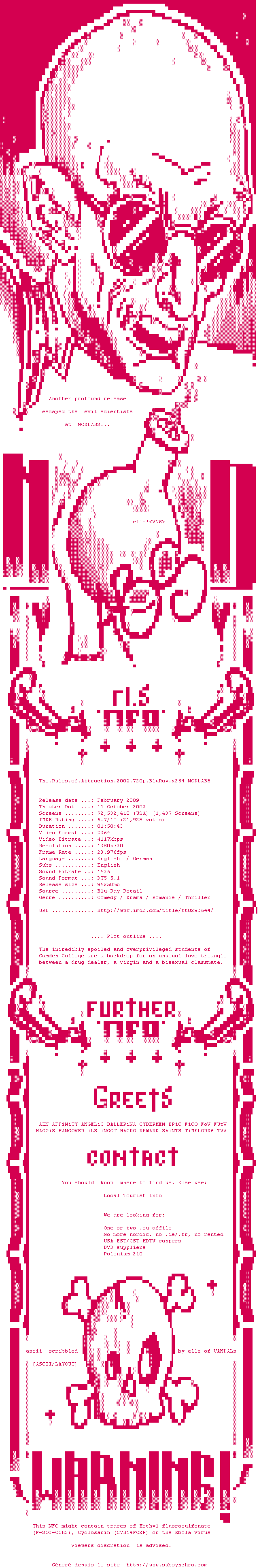 Voir le nfo de la release The.Rules.Of.Attraction.2002.BRRip.x264-VLiS