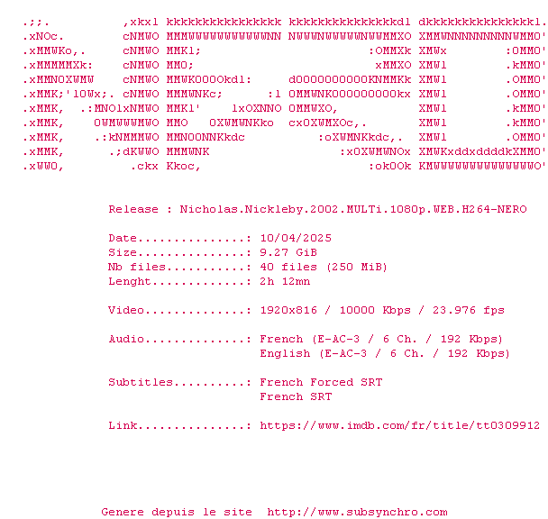 Voir le nfo de la release Nicholas.Nickleby.2002.MULTi.1080p.WEB.H264-NERO