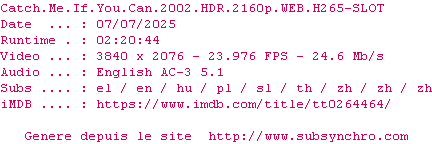 L'un des derniers bon film de Spielberg. J'ai même aimé Leonardo DiCaprio et Tom Hanks.