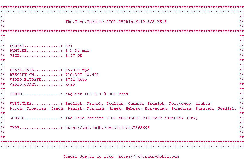 Voir le nfo de la release The.Time.Machine.2002.DVDRip.XviD.AC3-XEiS