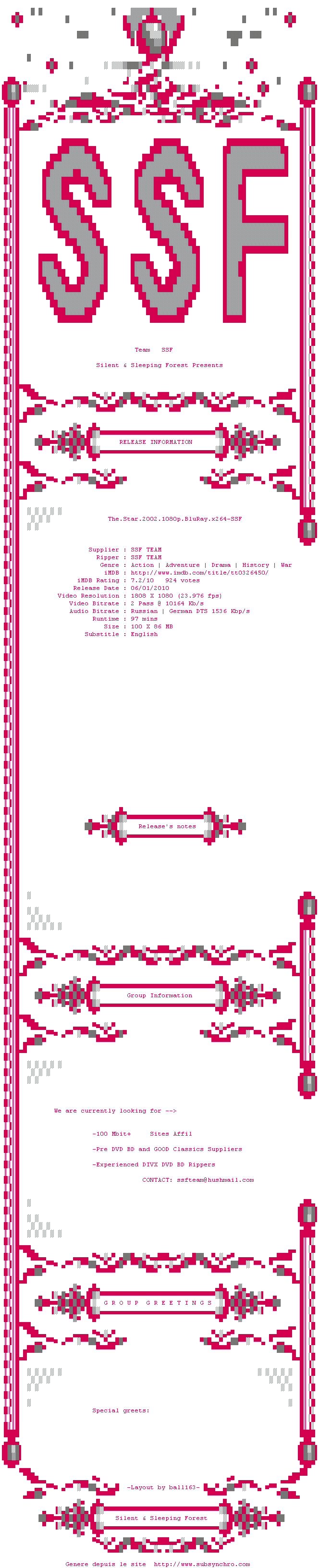 Telecharger le ZiP contenant NFO, Affiche, Sous-titre (*.srt)