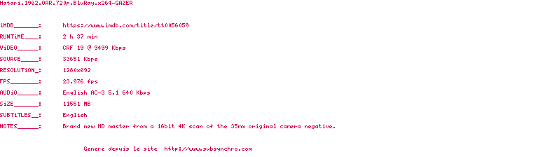 Voir le nfo de la release Below.2002.OAR.BDRip.x264-GAZER