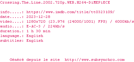 Voir le nfo de la release Crossing.The.Line.2002.720p.WEB.H264-DiMEPiECE