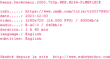 Voir le nfo de la release Danny.Deckchair.2003.720p.WEB.H264-DiMEPiECE