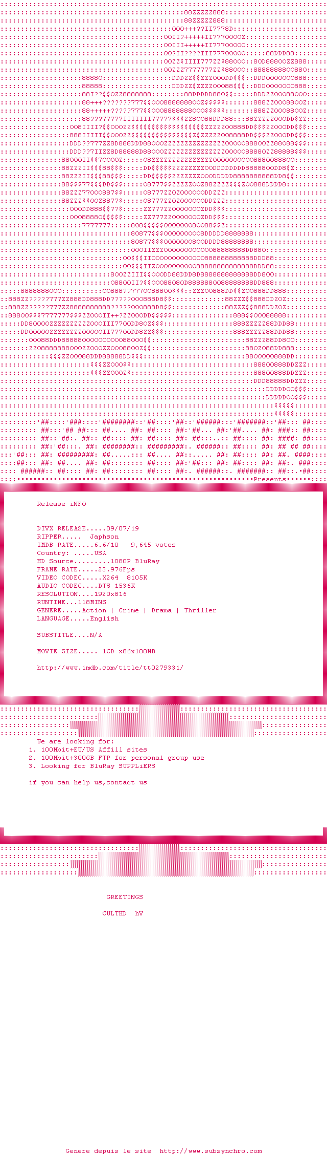 Voir le nfo de la release Dark.Blue.2002.1080p.BluRay.x264-OFT