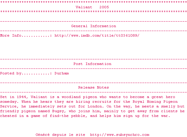 Le commentaire de Yaumegui Commente par Yaumegui (554), Le Mercredi 18 Decembre 2013 à 00h11 C'est bien en-deçà de Shreck (comme quoi les producteurs ne servent à rien). Cependant l'histoire est drôle et maligne, les personnages sont bien campés, quelques bons gags et bonnes répliques font qu'enfants et parents passent un bon moment. 7 / 10 1 0
