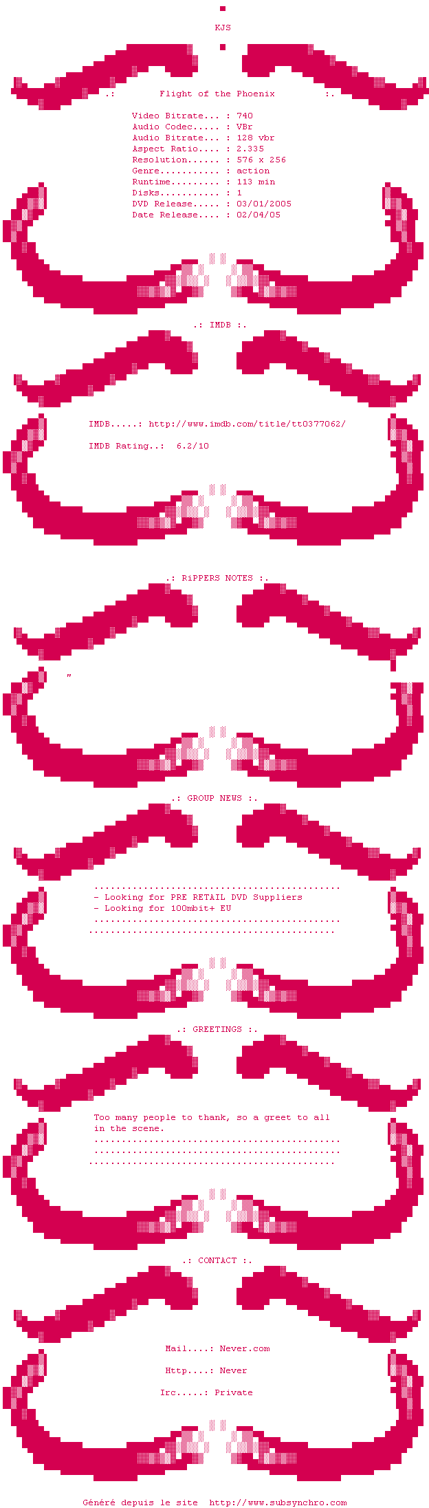 Voir le nfo de la release Flight.Of.The.Phoenix.DVDRiP.XViD-KJS