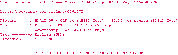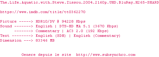 Le commentaire de AlexAlex Commente par AlexAlex (7), Le Vendredi 16 Mai 2014 à 15h51 Mon Wes Anderson préféré. Drôle et poétique. A voir si on ne l'a pas vu, maintenant qu'il est enfin sorti en bluray. 10 / 10 1 0
