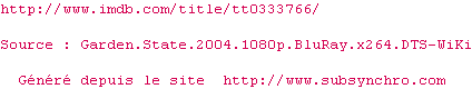 Voir le nfo de la release Garden.State.2004.720p.BluRay.x264-DON