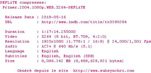 Voir le nfo de la release Primer.2004.1080p.WEB.x264-DEFLATE