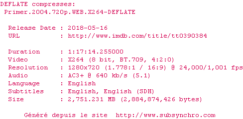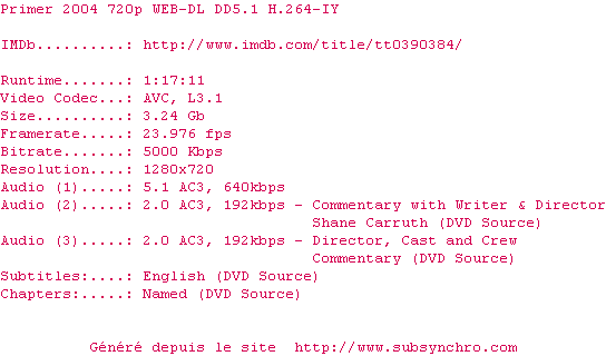 Voir le nfo de la release Primer.2004.720p.WEB.x264-DEFLATE