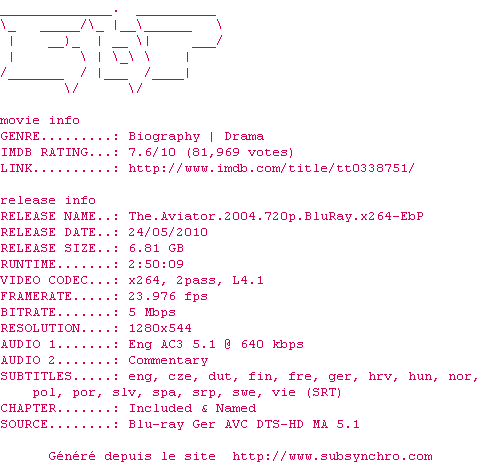 Telechargez le RSS « Fichier de la release The.Aviator.2004.720p.BluRay.x264-EbP »