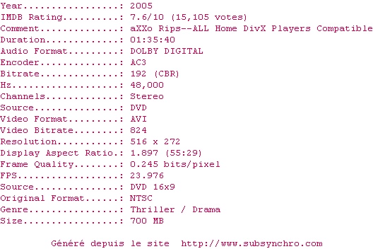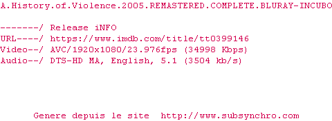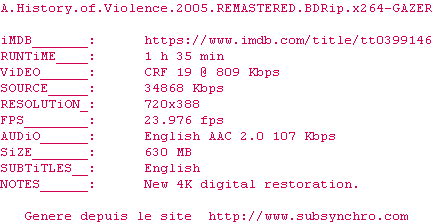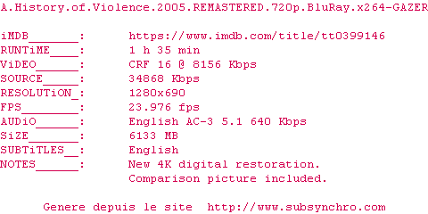 Histoire très prenante même si le scénario n'est pas très original, la mise en scène de Cronenberg pallie largement à ce défaut. Viggo Mortensen est très bon, Maria Bello un peu moins.