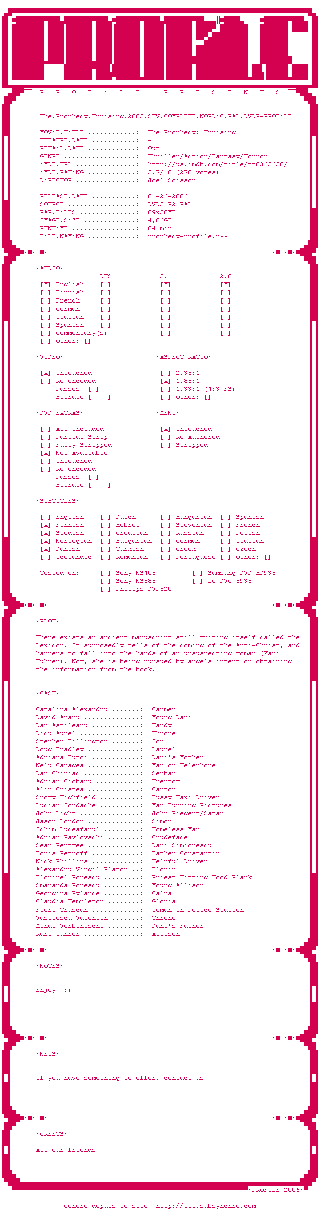 Ce film fait partie de la saga The Prophecy