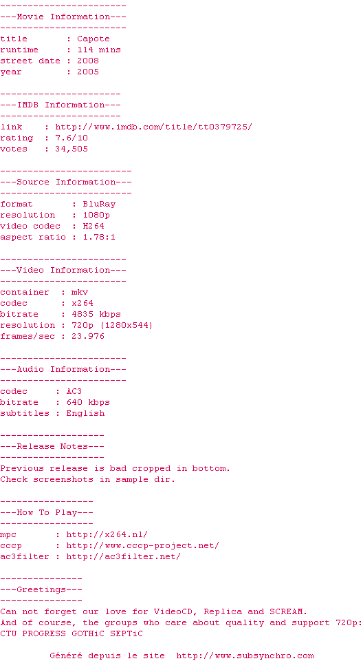 Telechargez le RSS « Fichier de la release Capote.2005.720p.Bluray.x264-REVEiLLE »