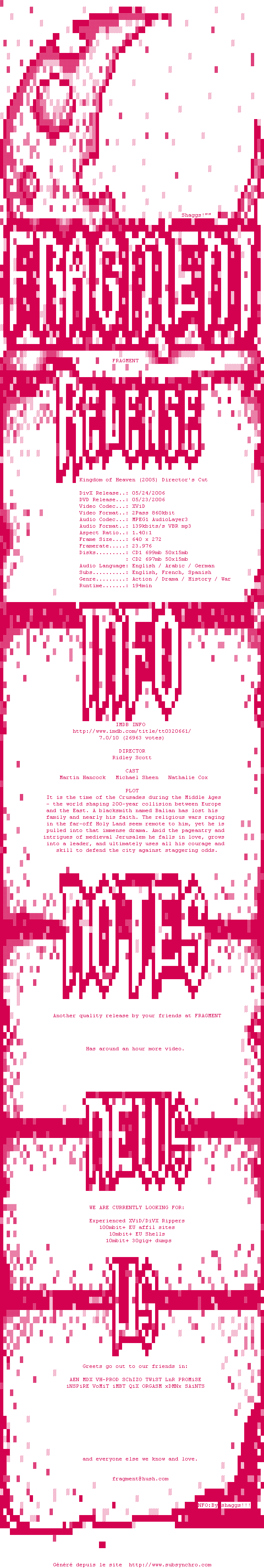 Telechargez le RSS « Fichier de la release Kingdom.Of.Heaven.2005.Directors.Cut.DVDRip.XviD-FRAGMENT »