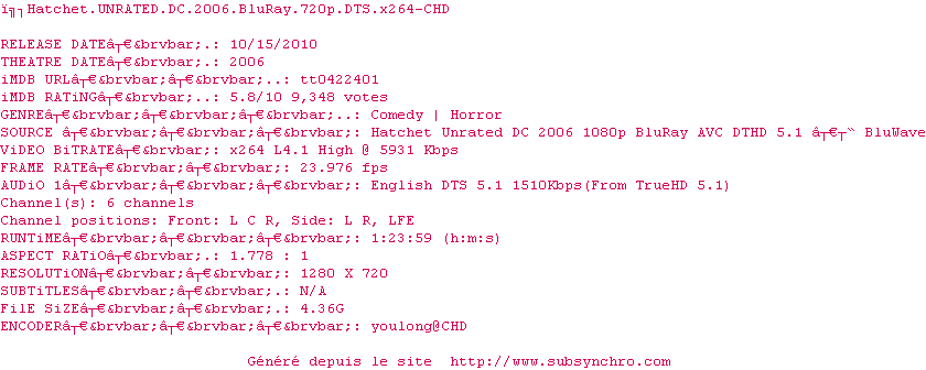 Butcher : La Légende de Victor Crowley (Hatchet) , realise en 2006