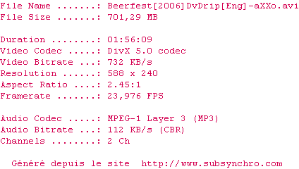 Voir le nfo de la release Beerfest.2006.DVDRip-aXXo