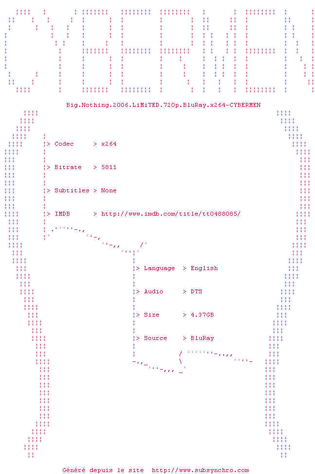 Voir le nfo de la release Big.Nothing.2006.LiMiTED.720p.BluRay.x264-CYBERMEN