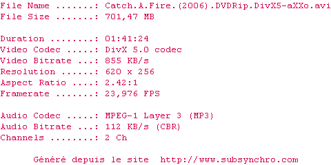 | Voir le nfo de la release Catch.A.Fire.2006.DVDRip-aXXo | aXXo | Catch.A.Fire.2006.DVDRip-aXXo OpenSubtitles | 0 fichier | ||