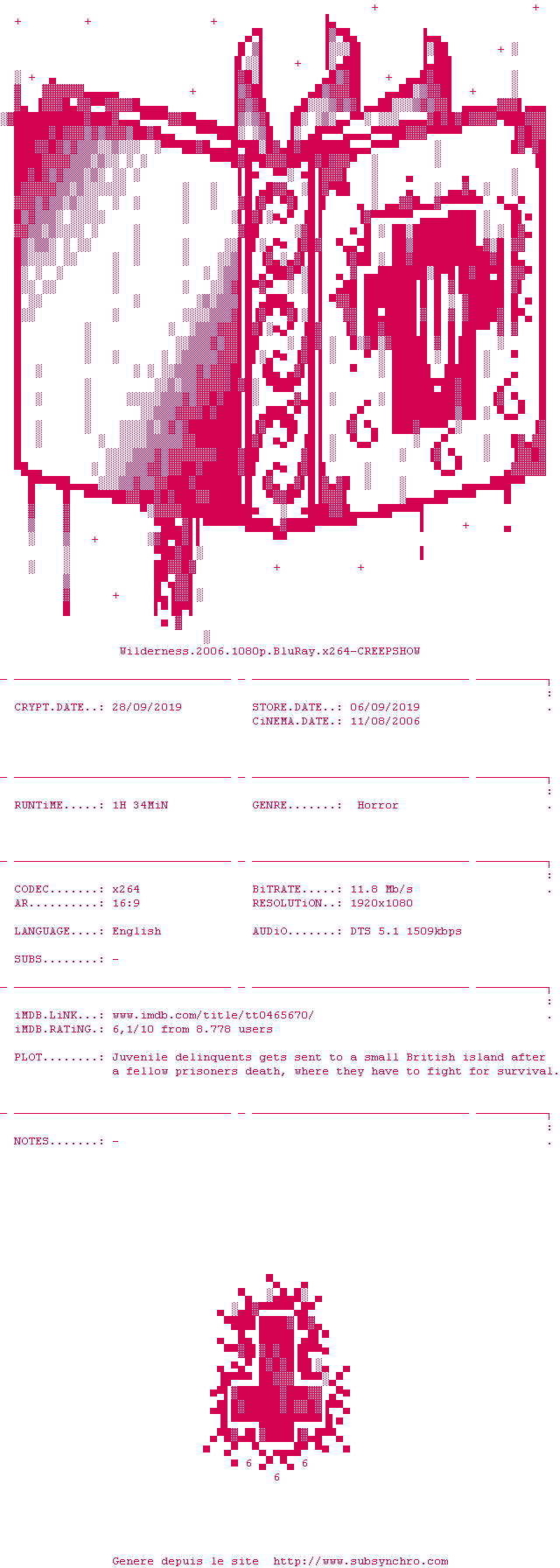 Voir le nfo de la release Wilderness.2006.720p.BluRay.x264-CREEPSHOW