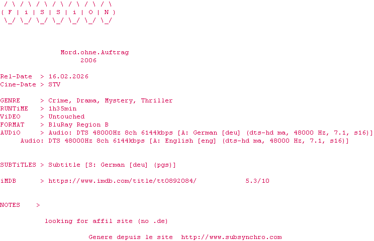 NFO de Mord.Ohne.Auftrag.2006.DUAL.COMPLETE.BLURAY.iNTERNAL-FiSSiON