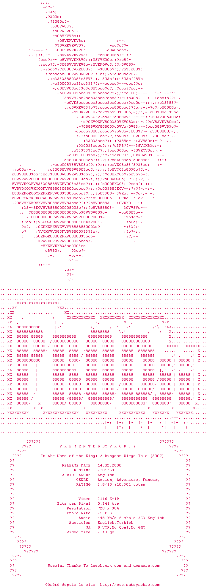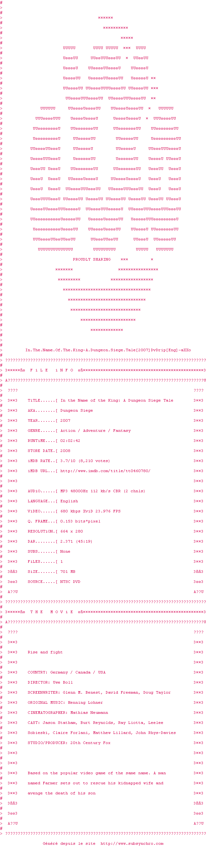 Voir le nfo de la release In.The.Name.Of.The.King-A.Dungeon.Siege.Tale.2007.DvDrip-aXXo