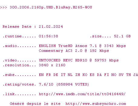 Et le dernier 300 ce n'est pas SNYDER qui l'a fait!