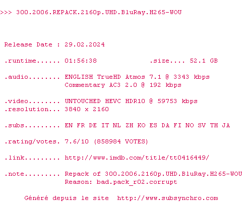 Il y a 6 commentaires pour le film #462 !Le commentaire de wooden