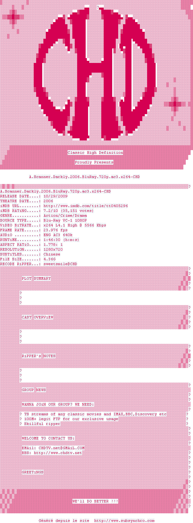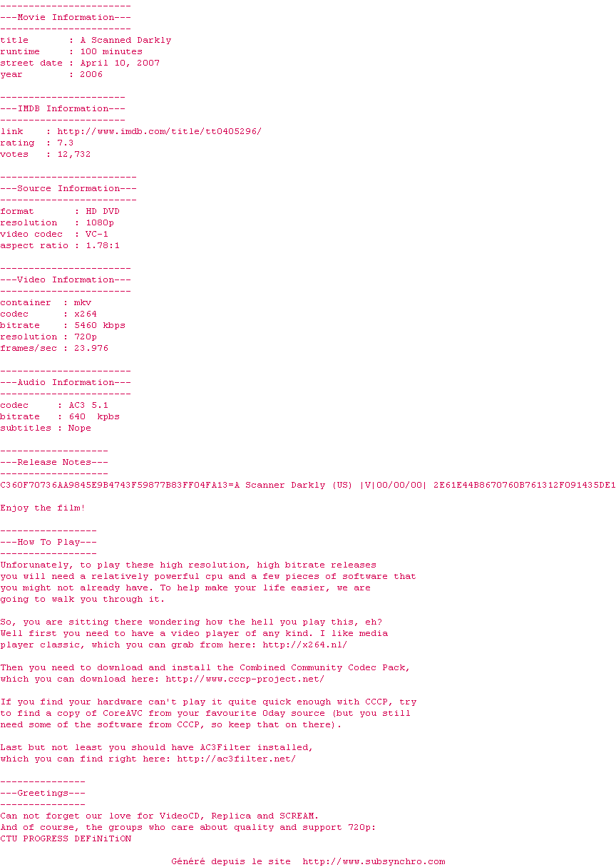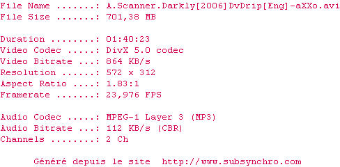 Le commentaire de ahuribarbu Commente par ahuribarbu (106), Le Samedi 17 Octobre 2015 à 01h35 Une technique de cinéma complètement original pour un film qui ne l'est pas moins. Une très bonne adaptation de Philip K Dick, à voir absolument pour tout amateur de SF et de l'auteur. Tous les ingrédients qui font de Dick un auteur à part, et exceptionnel, s'y retrouvent. Evidemment le spectateur peut s'y perdre aussi à certains moments. Pas de panique, c'est normal... 8 / 10 0 0