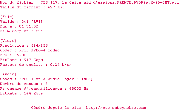 Voir le nfo de la release OSS.117.Le.Caire.nid.d.espions.FRENCH.DVDRip.XviD-JMT