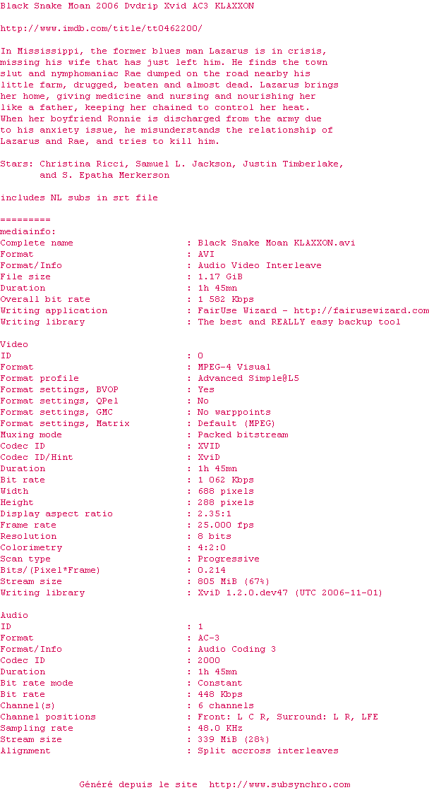 Le meilleur film que j'ai vu depuis un moment. Samuel Jackson en vieux bluesman dans sa cabane au fond des bois (c'est vraiment lui qui chante, même si ce n'est pas lui qui joue la guitare) et Christina Ricci sulfureuse et fragile... La scène d'orage dans la cabane, l'image de Ricci assise par terre illuminée par les éclairs écoutant Jackson qui joue pour elle, mythique!